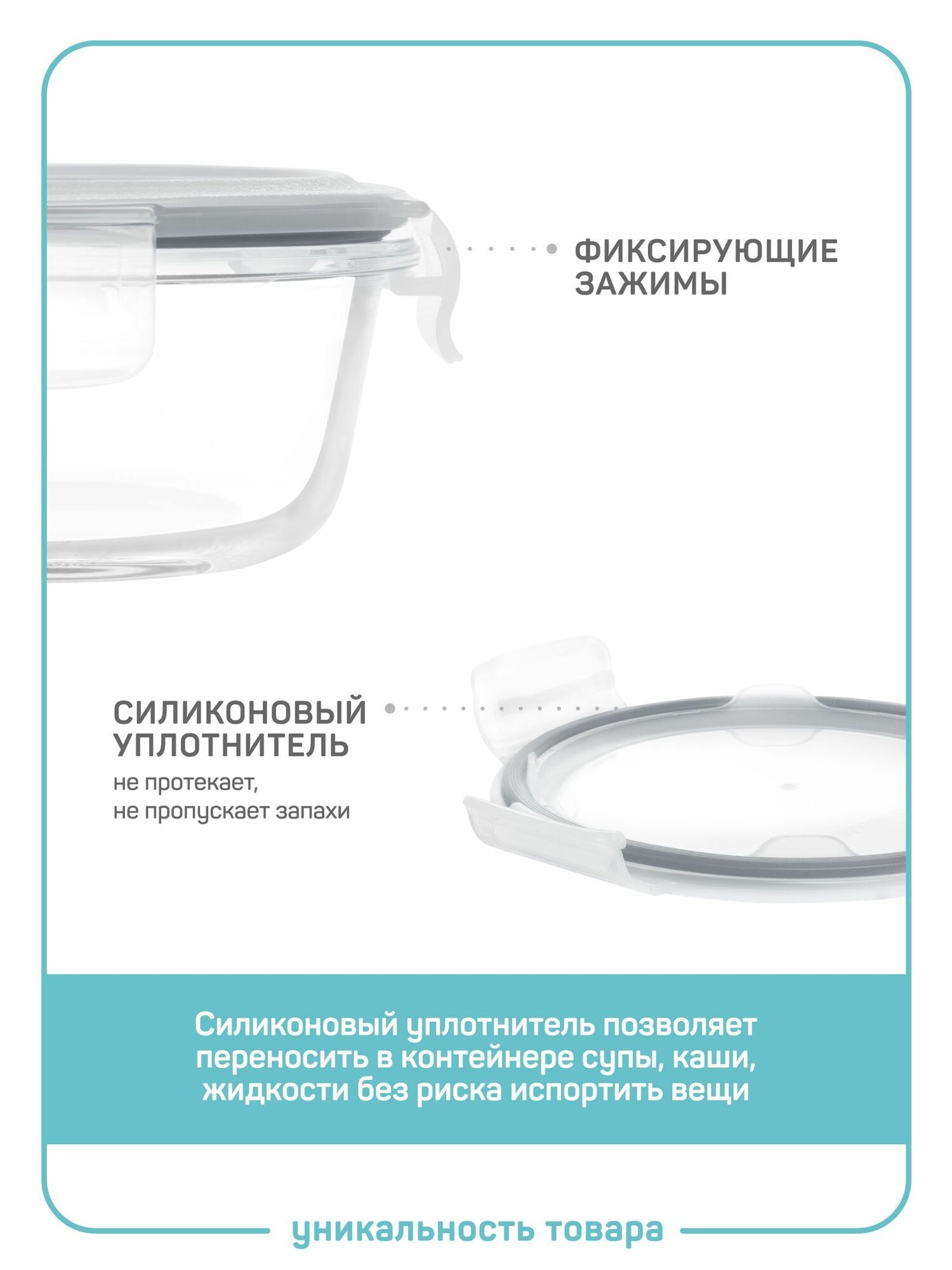 Ланч-бокс для еды в офис, на работу или учебу – крышка непроливайка бережет Ваши вещи от супа и других жидкостей, а стекло спокойно переносит разогрев.
