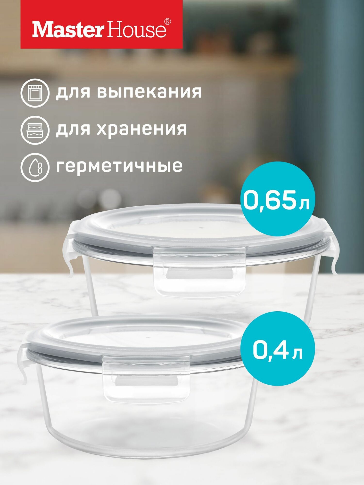 Купить Контейнеры для еды стеклянные Master House с крышкой 2 шт, 400 мл+650 мл круглые жаропрочные для хранения и выпекания с доставкой по всей России. Контейнеры для еды стеклянные Master House с крышкой 2 шт, 400 мл+650 мл круглые жаропрочные для хранения и выпекания: сравнение цен, характеристики, фото, актуальное наличие и цены.
