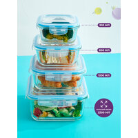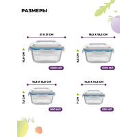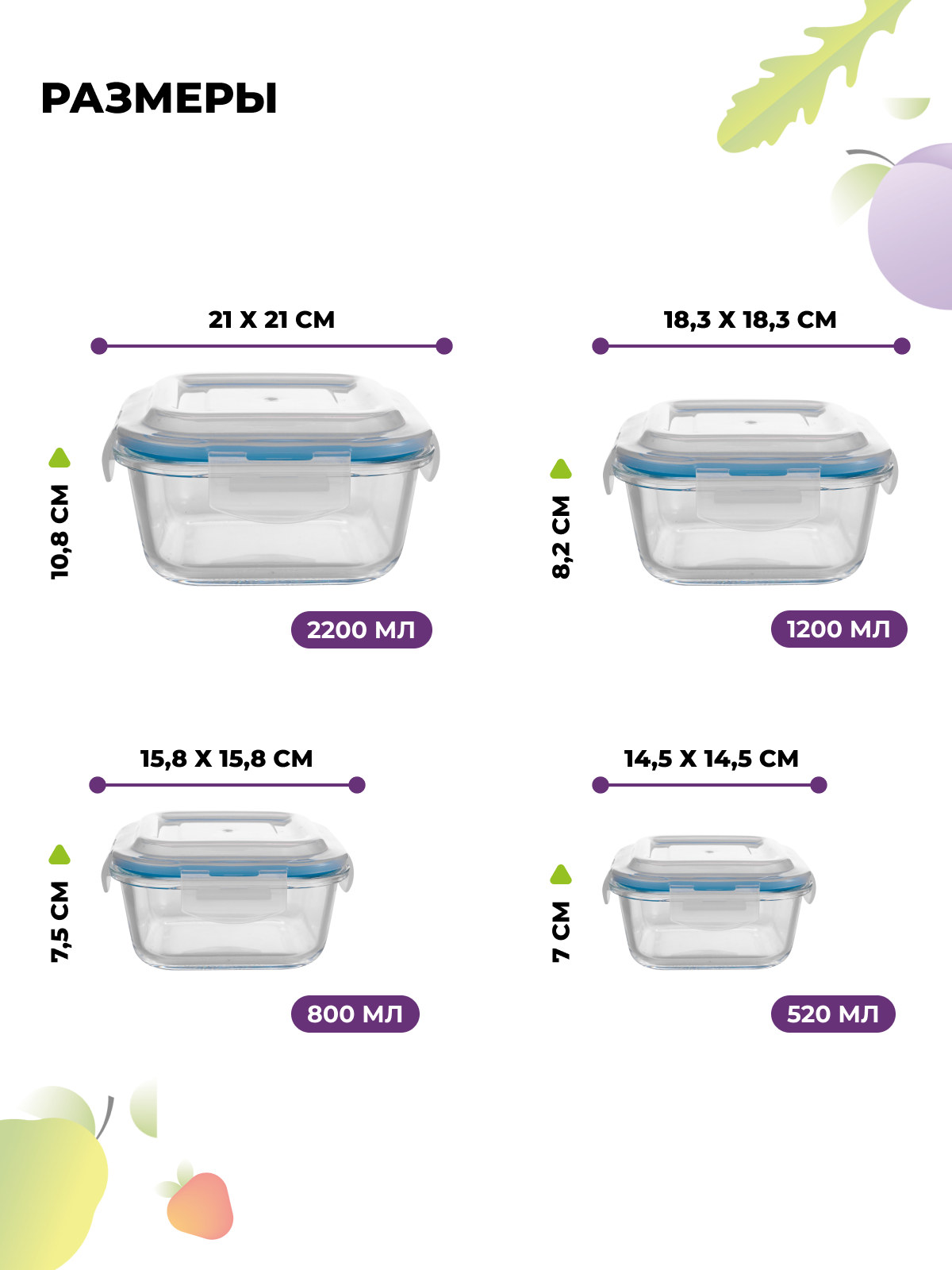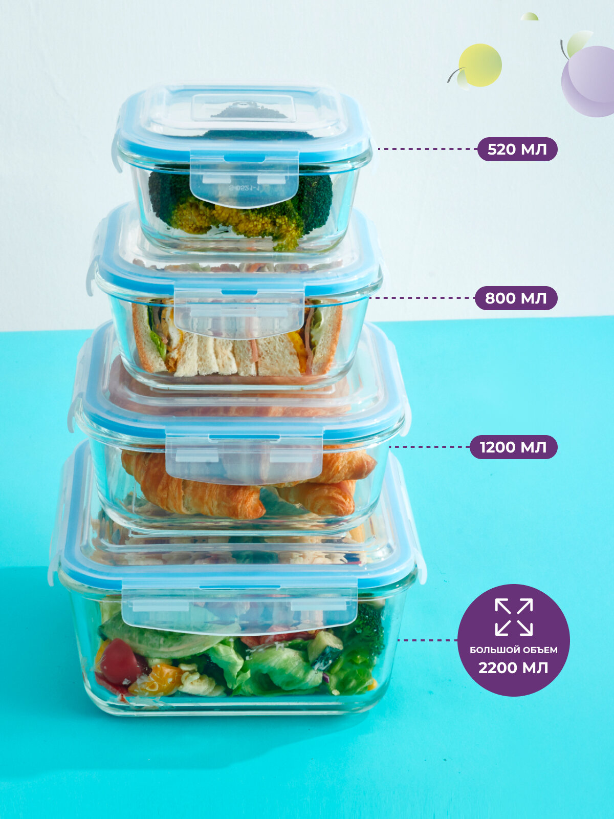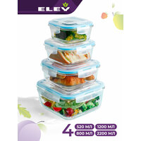 Купить Контейнеры для хранения еды ELEY стеклянные герметичные с крышками, набор 4 шт: 520мл, 800мл, 1200мл, 2200мл с доставкой по всей России.