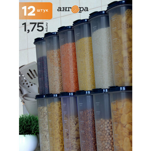 Набор стильных контейнеров для хранения сыпучих продуктов от надежного производителя Ангора — это практичное и элегантное решение для хранения крупы, ароматных специй и других продуктов! В комплект входят 12 пластиковых контейнеров с крышкой, размером 18,5х8,8х16 см.