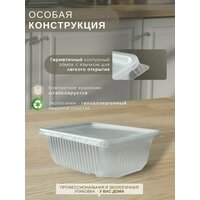 Универсальный пластиковый контейнер можно использовать в помещении, на улице, в транспорте. Пищевой пластик абсолютно безопасен, поэтому наборы контейнеров подходят для разогрева пищи в микроволновой печи (СВЧ), хранения еды в холодильнике, заморозки овощей, зелени, готовых блюд, ягод, фруктов и овощей. Эстетичные неоклассические прямоугольные формы контейнера со скругленными углами и трапециевидным профилем придают оригинальность пластиковой посуде, которую можно использовать как салатник на фуршетах или для подачи холодных и горячих закусок.