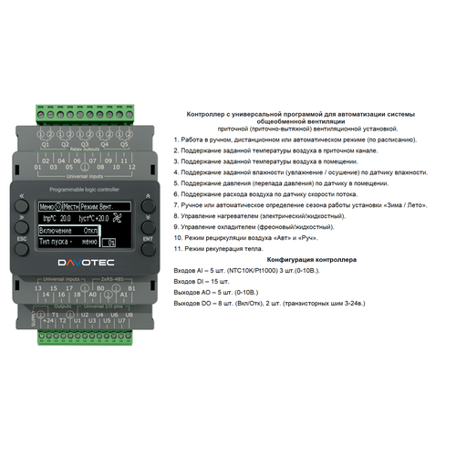 Контроллер управления вентиляцией Davotec M245 vent (приточно-вытяжной системы). Конфигурируемый.: сравнение цен, характеристики, фото, актуальное наличие и цены.