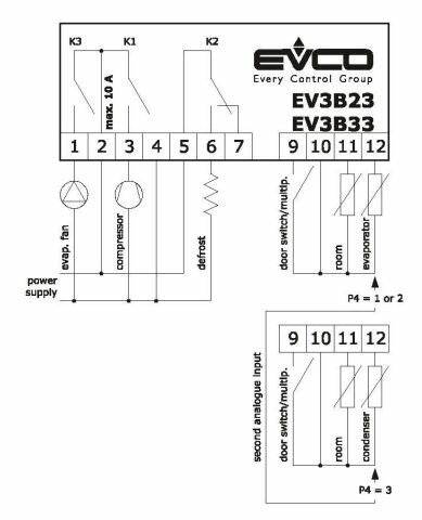 Оснащён 2 аналоговыми входами для датчиков NTC/PTC (датчик объёма, датчик испарителя/конденсатора), 1 многофункциональным цифровым входом, 3 управляющими реле (16А @ 250 VAC компрессор / 8А @ 250 VAC оттайка, 5А @ вентилятор испарителя).