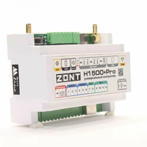 Универсальный контроллер ZONT H1500+ PRO обладает широким функционалом и подходит для контроля и управления сложными системами отопления. Прибор является современной версией контроллера ZONT H1000+ и соответствует профессиональным стандартам ZONT.