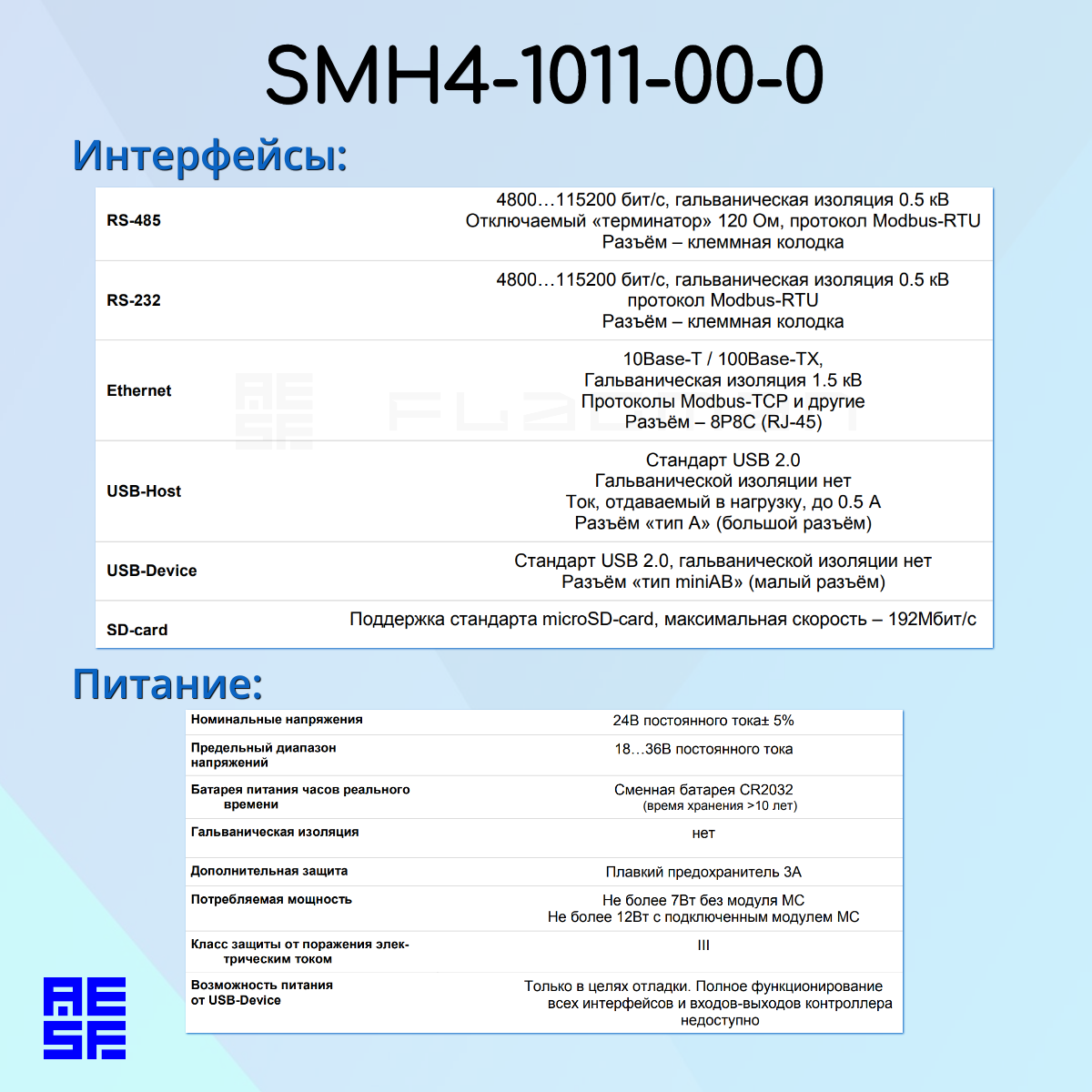 Контроллер SMH4-1011-00-0 Segnetics обладает следующими характеристиками: