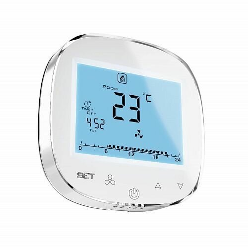 Контроллер VOLCANO EC — это панель управления для всех типов воздушно-отопительных агрегатов VOLCANO. Для легкой интеграции с системой автоматизации здания (BMS) он оснащен интерфейсом RS 485 с протоколом Modbus RTU. Контроллер отличается очень простой и интуитивно понятной работой благодаря удобной практичной мембранной клавиатуре и освещенному экрану. Контроллер VOLCANO EC выполнен из высококачественных электронных материалов. Панель предназначена для непрерывной работы с однофазным источником питания 230 В переменного тока. Благодаря продуманной конструкции контроллер легко устанавливается , на специальном монтажном кронштейне в скрытой монтажной коробке Ø60 мм. Монтажный кронштейн позволяет легко устанавливать и демонтировать панель. Электрические провода присоединяются непосредственно в клеммную колодку, расположенную на задней панели контроллера. Панель обеспечивает трехступенчатое регулирование частоты вращения вала двигателей EC, а также управление с функциями обогрева и охлаждения. Устройство имеет экономичный режим работы и защиту от замерзания теплоносителя. Благодаря встроенному термостату, датчику температуры и функции программирования контроллер позволяет устанавливать параметры работы на неделю(рабочие дни / выходные, 2 периода нагревания в день). Внешний датчик температуры обеспечивает свободный выбор места измерения поддерживаемой температуры. Датчик обнаруживается автоматически. Его соединение автоматически переключает контроллер в рабочий режим с внешним датчиком температуры.