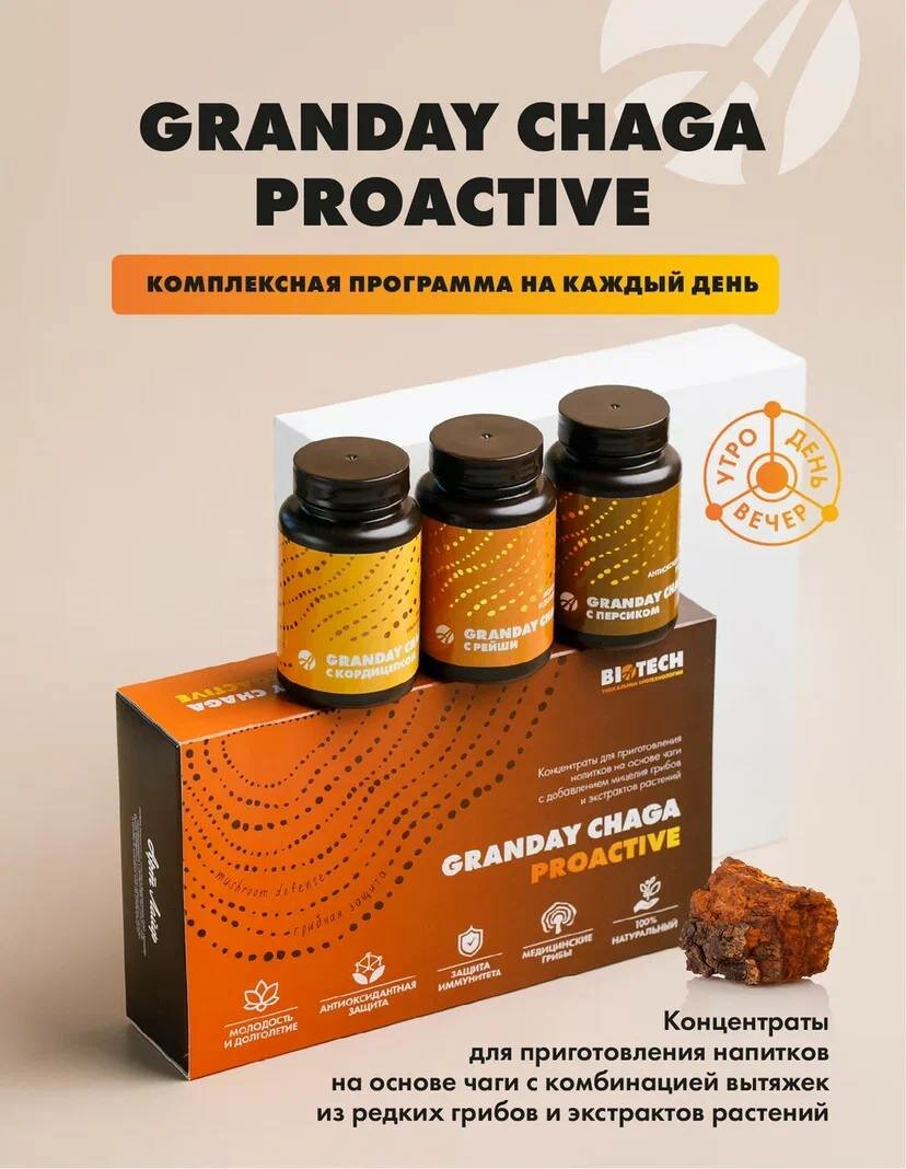 Рекомендуется употреблять напиток GRANDAYCHAGAproactive по три чашки в день: утро, день и вечер. 1 упаковка GRANDAYCHAGAproactive рассчитана на 1,5 месяца употребления напитка. Профилактический курс составляет 3-5 месяцев, при необходимости курс повторяется после 7-10-дневного перерыва.