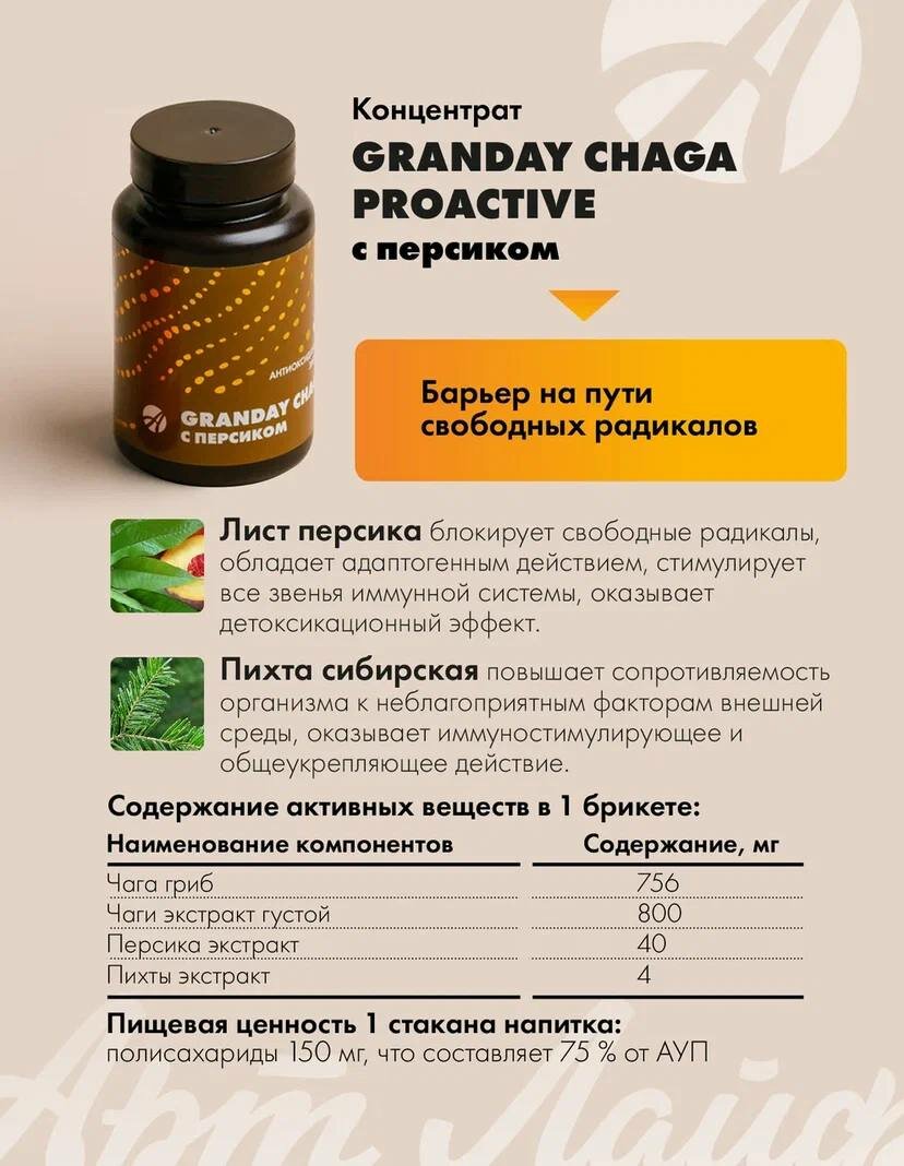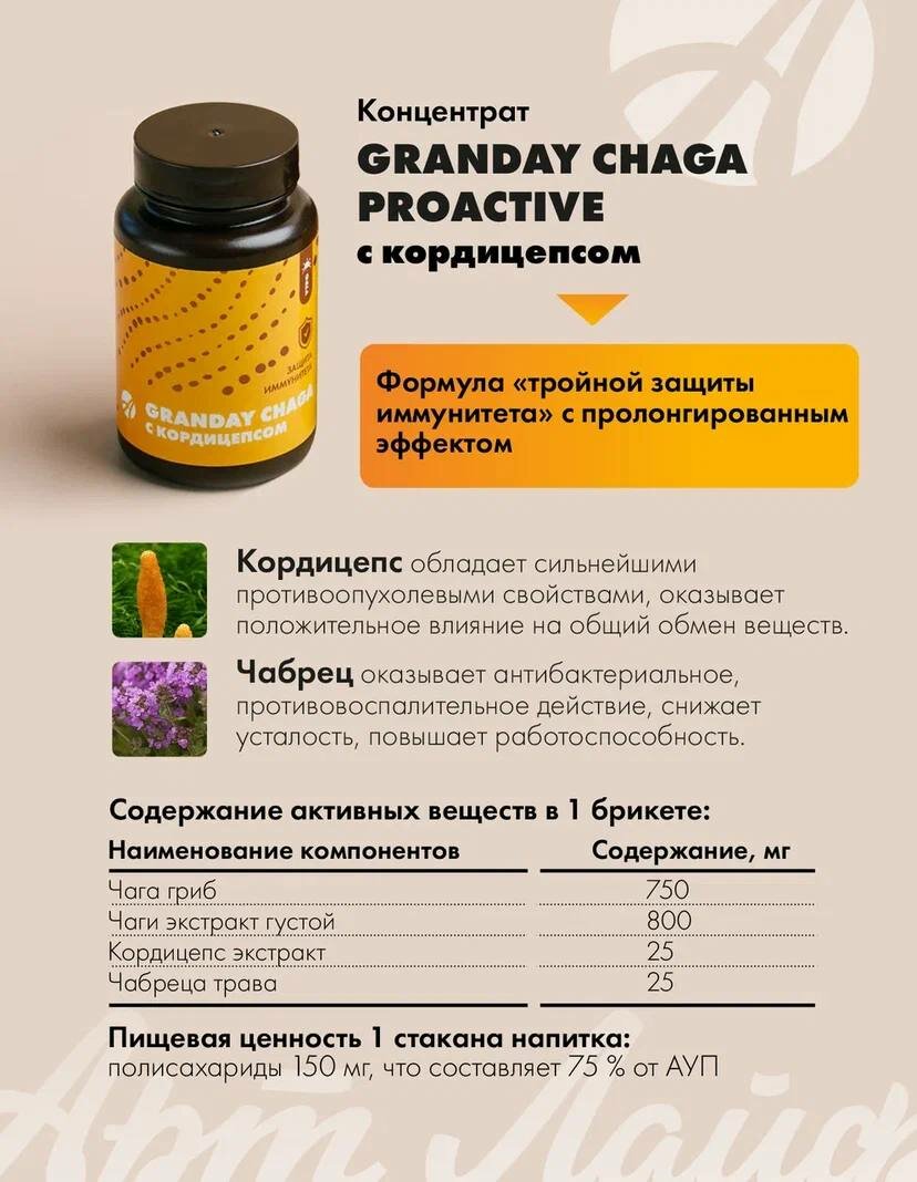 Концентрат для напитков Арт Лайф "Granday Chaga", чага, иммунитет, антиоксидантная защита