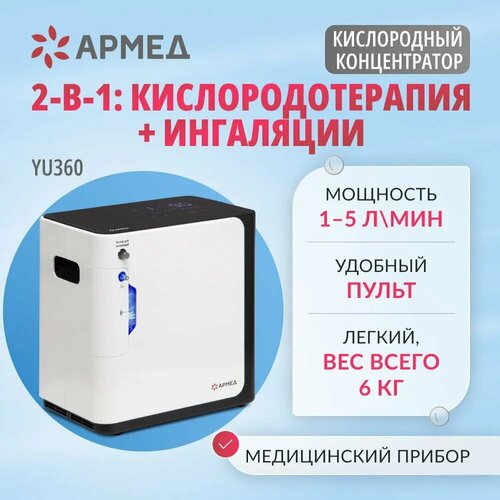 Концентратор кислорода Армед YU360 (медицинский, производительность 1 л/мин, мобильный, портативный, для домашнего использования, с выходом для ингаляций)