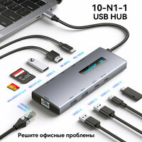 Концентратор USB — C концентратор 10 в 1 / адаптер USB 3.0×3, USB — C 3.0×2, HDMI 4K, 1000 Mpbs Ethernet, microSD3.0 Card, SD3.0 Card, PD Зарядка до 100W для MacBook Pro/Air: сравнение цен, характеристики, фото, актуальное наличие и цены.