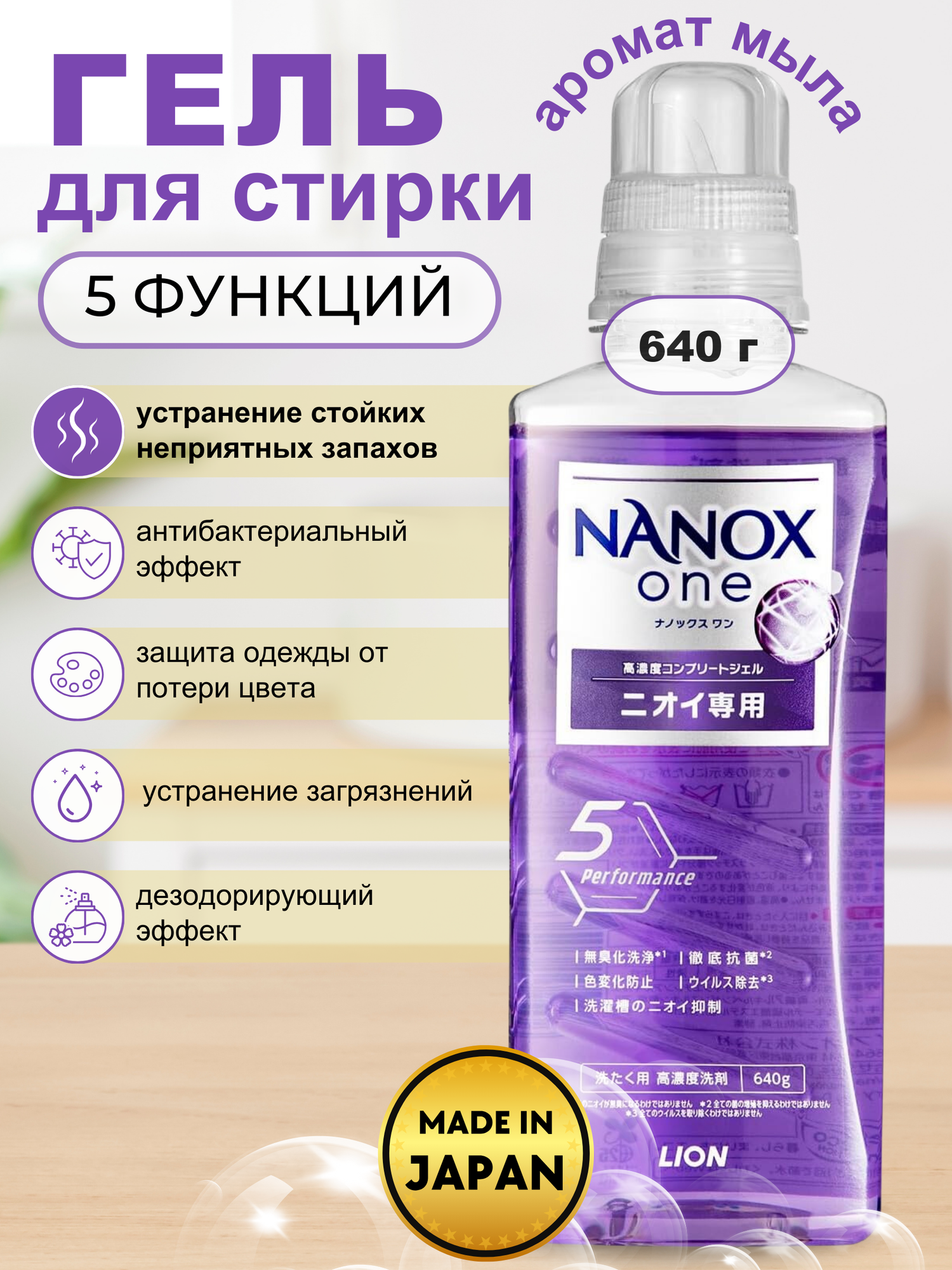 Купить Концентрированное жидкое средство для стирки белья LION Nanox One for Smells с повышенным дезодорирующим и антибактериальным эффектом, 640г. с доставкой по всей России.