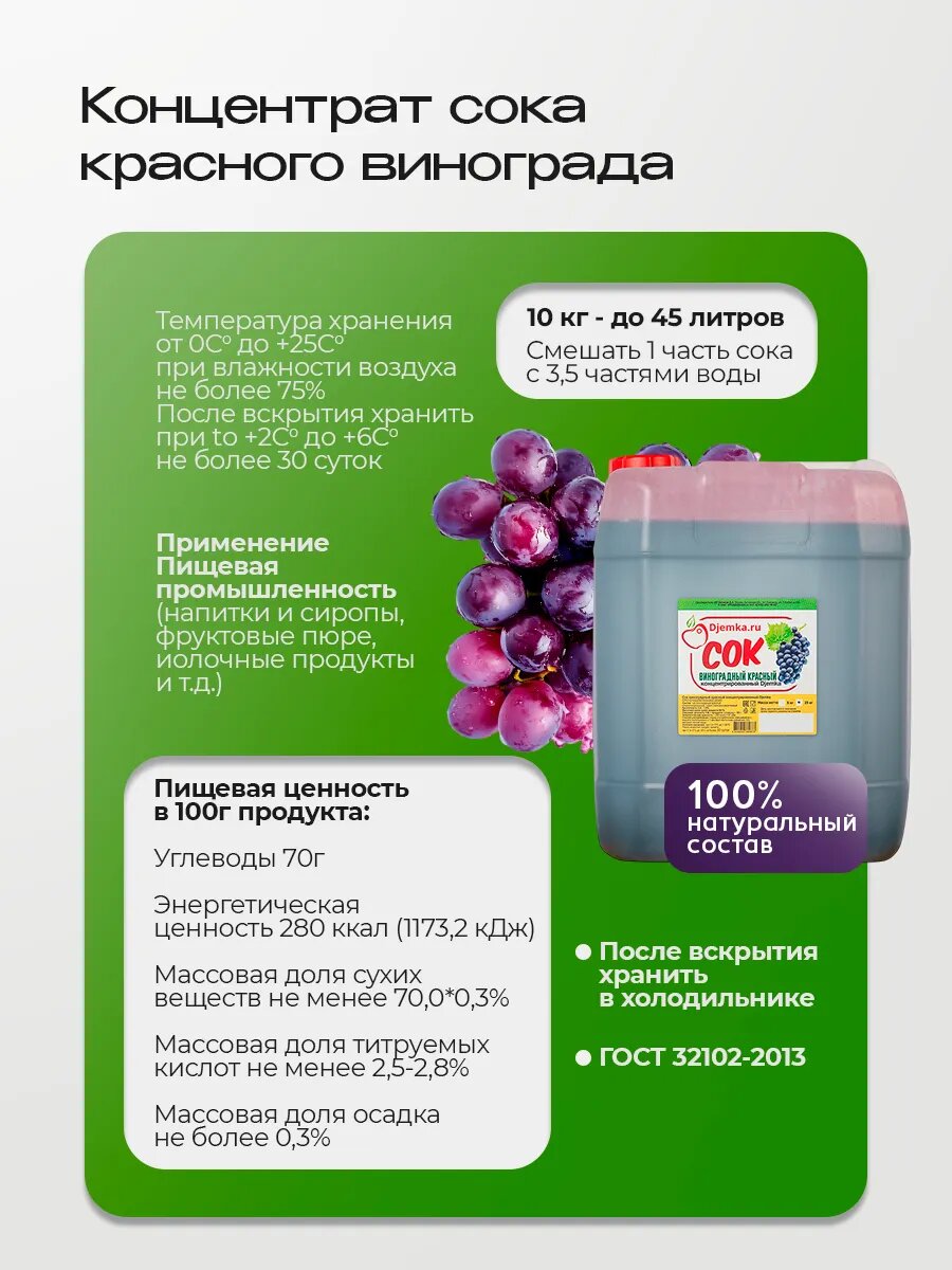 Сок концентрированный Djemka Виноград красный, без ГМО, без консервантов, 10л: сравнение цен, характеристики, фото, актуальное наличие и цены.