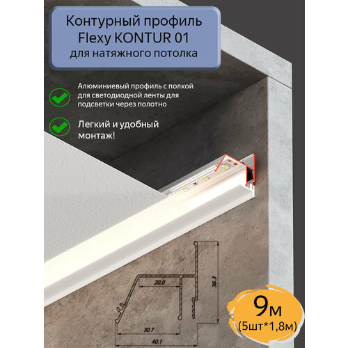 Купить Контурный профиль Flexy KONTUR 01 для натяжных потолков, 9м(5шт*1,8м) с доставкой по всей России. Контурный профиль Flexy KONTUR 01 для натяжных потолков, 9м(5шт*1,8м): сравнение цен, характеристики, фото, актуальное наличие и цены.