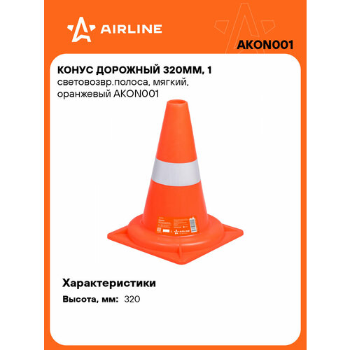 Конус дорожный 320мм, 1 световозвр. полоса, мягкий, оранжевый
