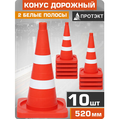 Комплект из 10 штук. Конус сигнальный упругий оранжевый с 2 белыми полосами высотой 520 мм.: сравнение цен, характеристики, фото, актуальное наличие и цены.