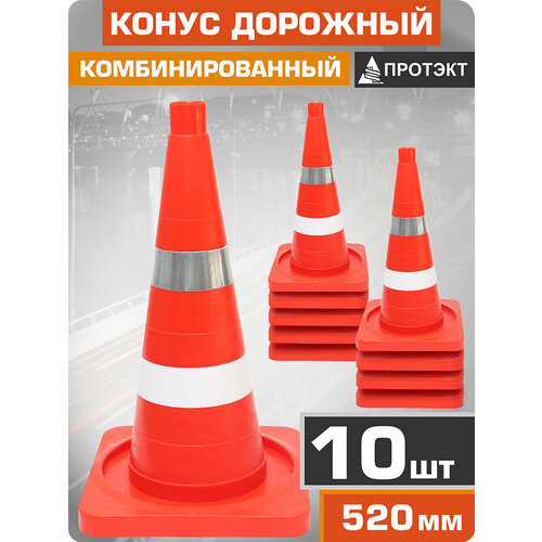 Конус дорожный сигнальный 520 мм, с 1 белой матовой и 1 светоотражающей полосой, 10 шт.: сравнение цен, характеристики, фото, актуальное наличие и цены.