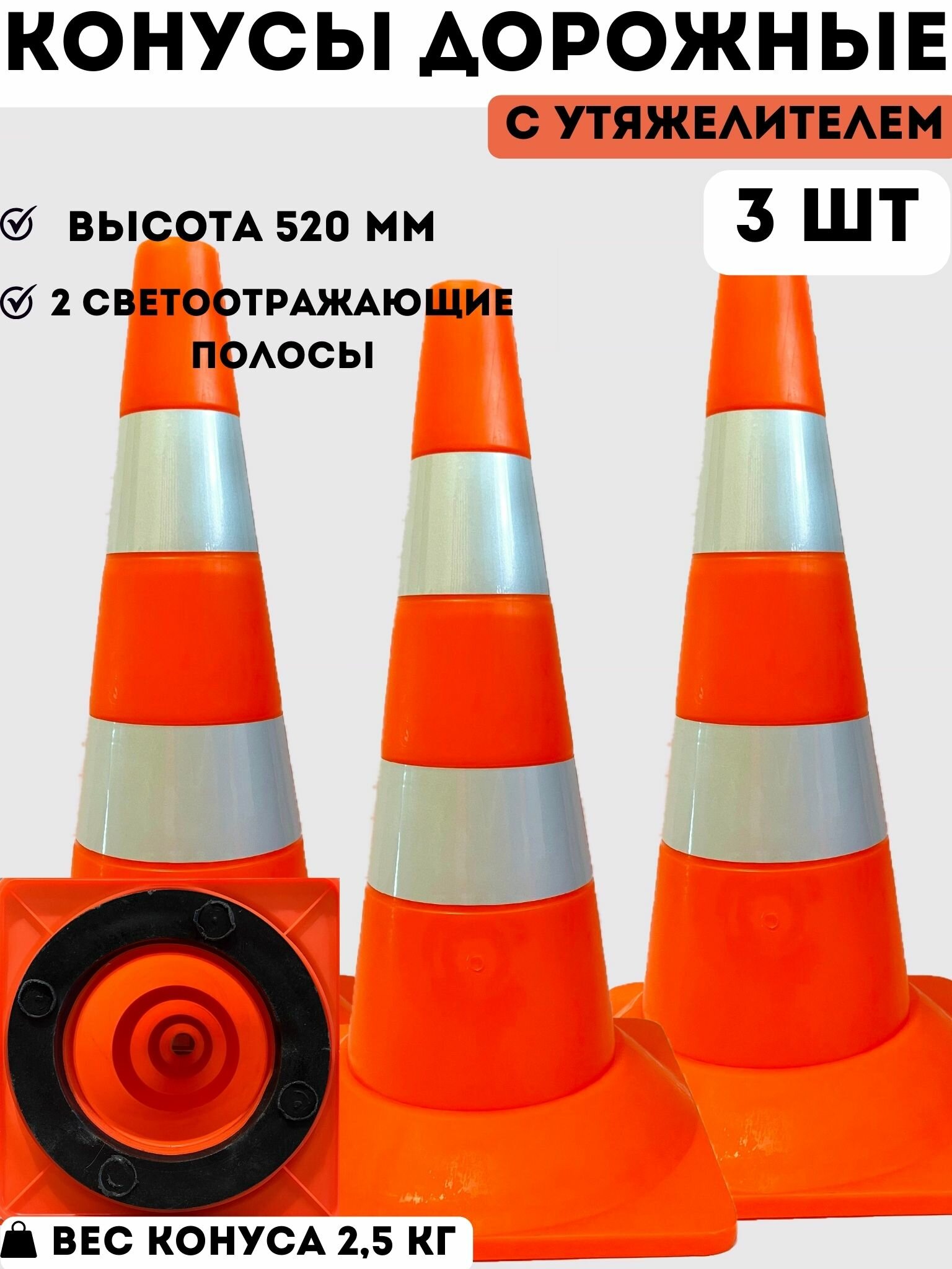 Конус дорожный сигнальный пластиковый мягкий оранжевый утяжеленный с 2 светоотражающими полосами (набор 3 шт — высота 520 мм): сравнение цен, характеристики, фото, актуальное наличие и цены.