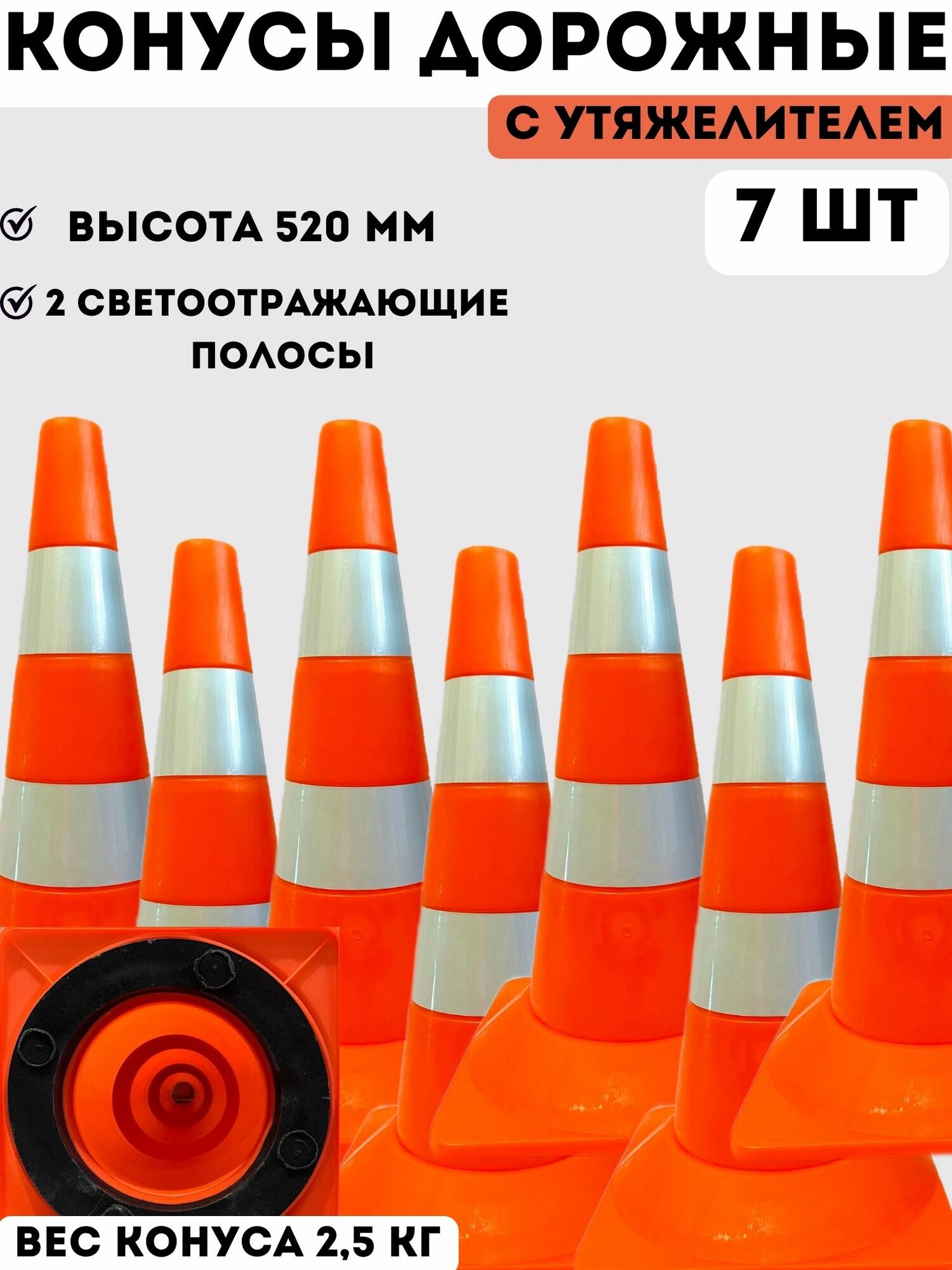 Конус дорожный сигнальный пластиковый мягкий оранжевый утяжеленный с 2 светоотражающими полосами (набор 7 шт — высота 520 мм): сравнение цен, характеристики, фото, актуальное наличие и цены.
