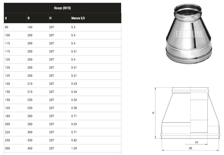 Конус Сендвич Из Нержавейки (430/0,5 Мм ) Ф150Х210 Ferrum: сравнение цен, характеристики, фото, актуальное наличие и цены.
