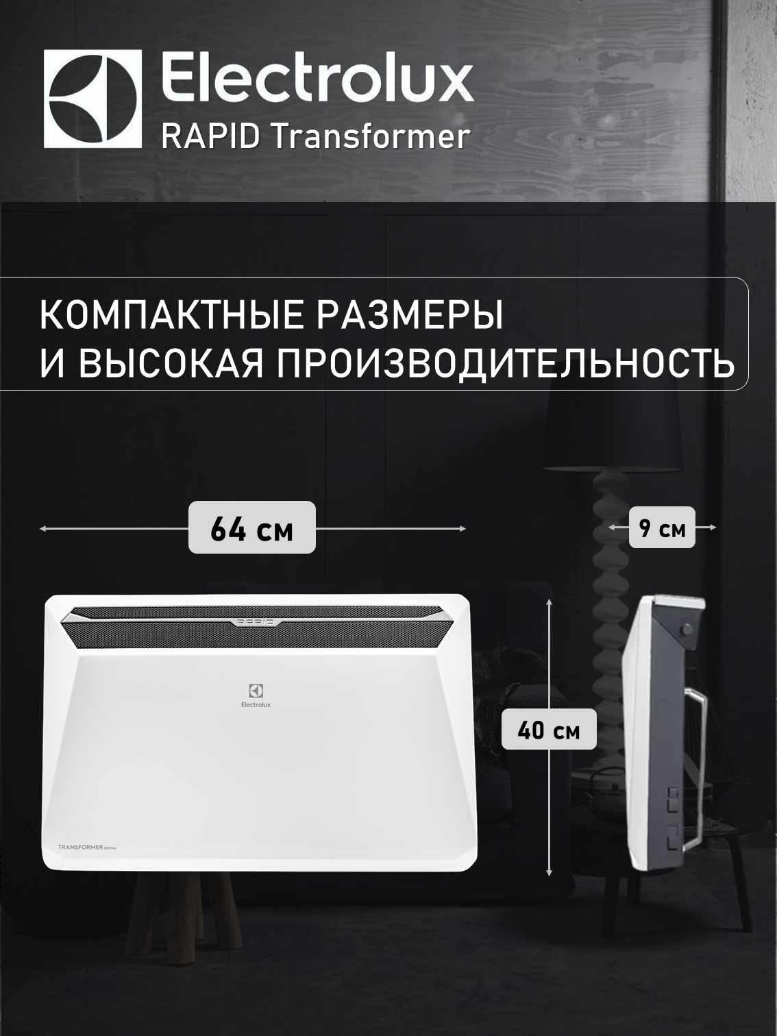 Конвектор Electrolux RAPID Transformer ECH/R-2000 T-TUI4, 2 кВт, до 25 м2, инверторное управление: сравнение цен, характеристики, фото, актуальное наличие и цены.