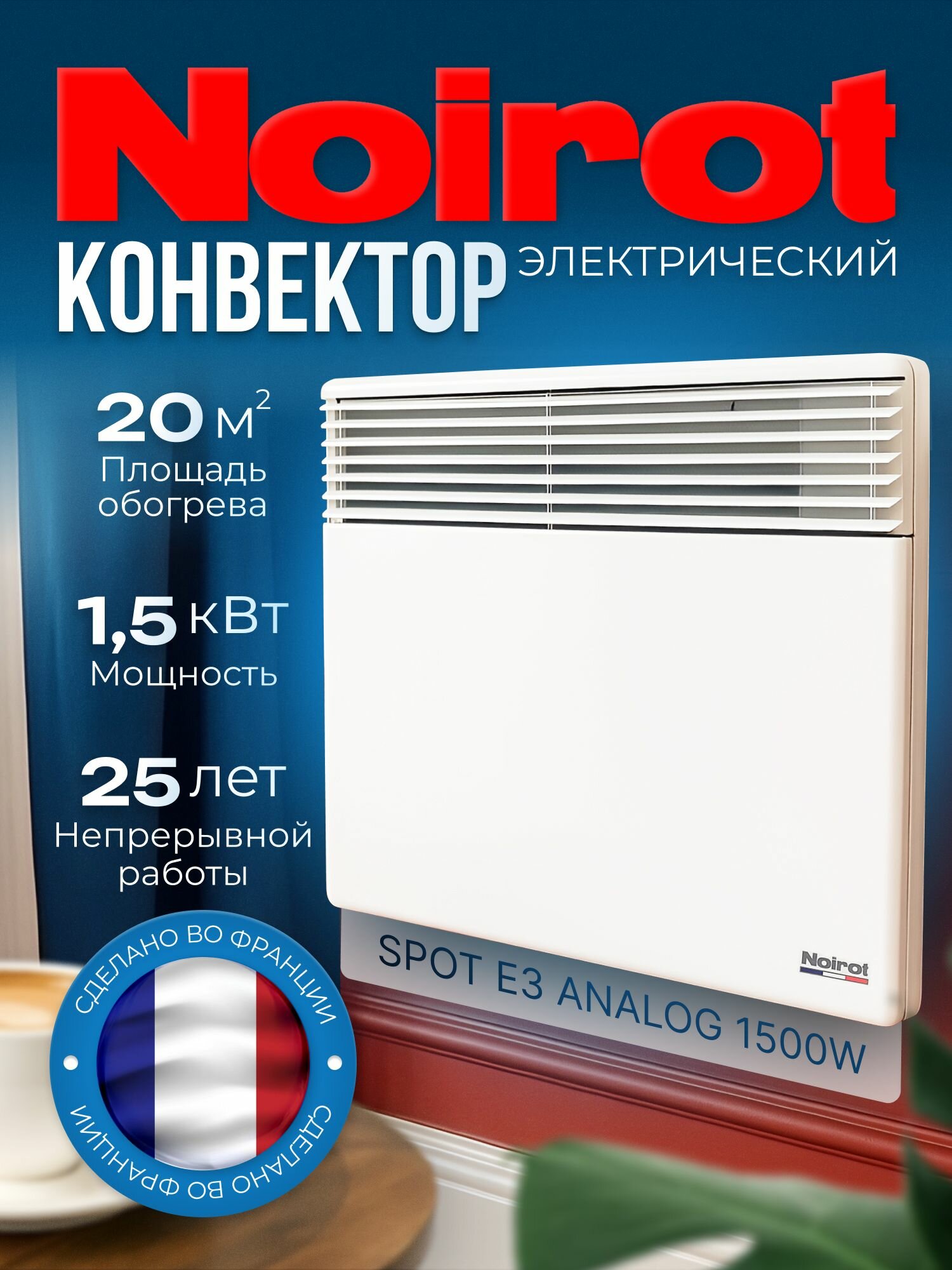 Конвектор электрический NOIROT SPOT E3 ANALOG, 1500 Вт, до 20 м2, Сделано во Франции, ножки в комплект не входят: сравнение цен, характеристики, фото, актуальное наличие и цены.