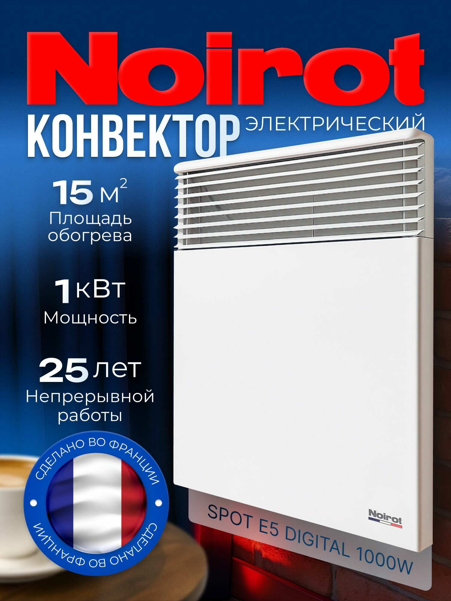 Конвектор электрический NOIROT SPOT E5 DIGITAL, 1000 Вт, до 15 м2, Сделано во Франции, ножки в комплект не входят: сравнение цен, характеристики, фото, актуальное наличие и цены.