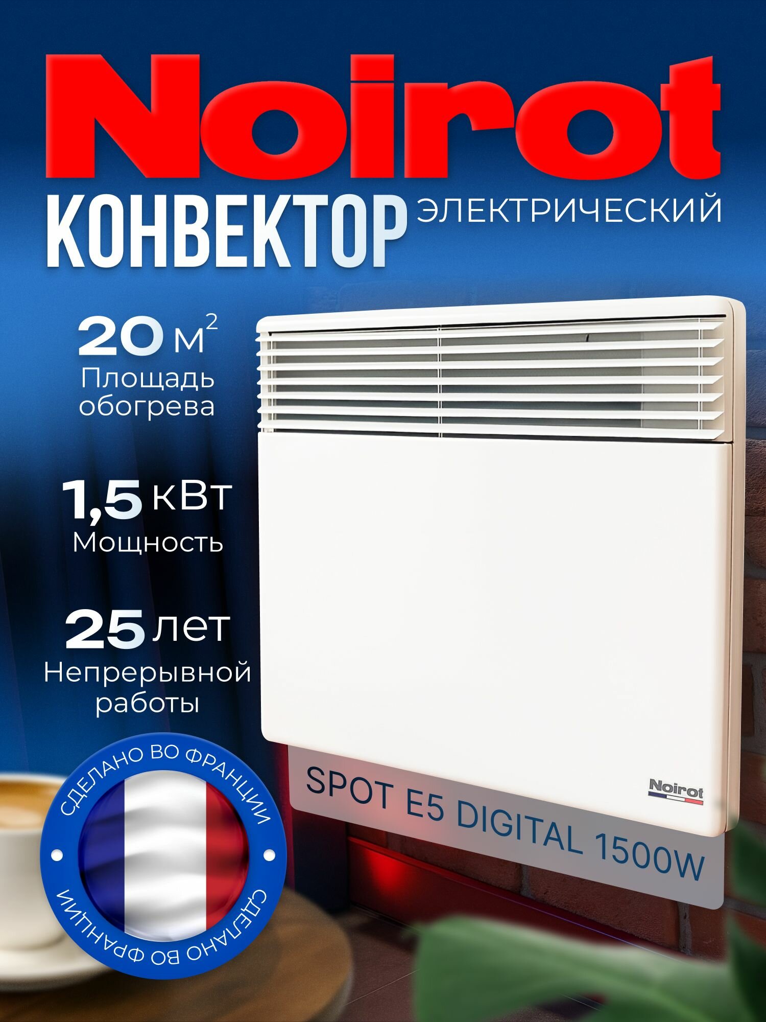 Конвектор электрический NOIROT SPOT E5 DIGITAL, 1500 Вт, до 20 м2, Сделано во Франции, ножки в комплект не входят: сравнение цен, характеристики, фото, актуальное наличие и цены.