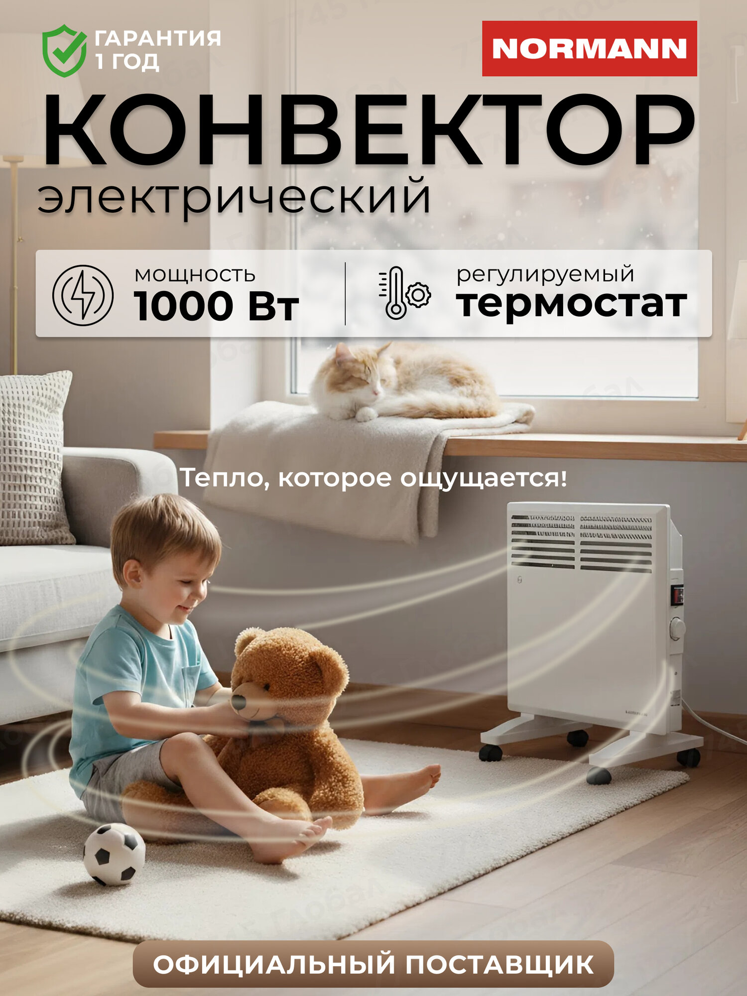 Электрический обогреватель конвектор NORMANN ACH-104, 1 кВт, 12 м², термостат, бесшумный, напольный и настенный, белый: сравнение цен, характеристики, фото, актуальное наличие и цены.
