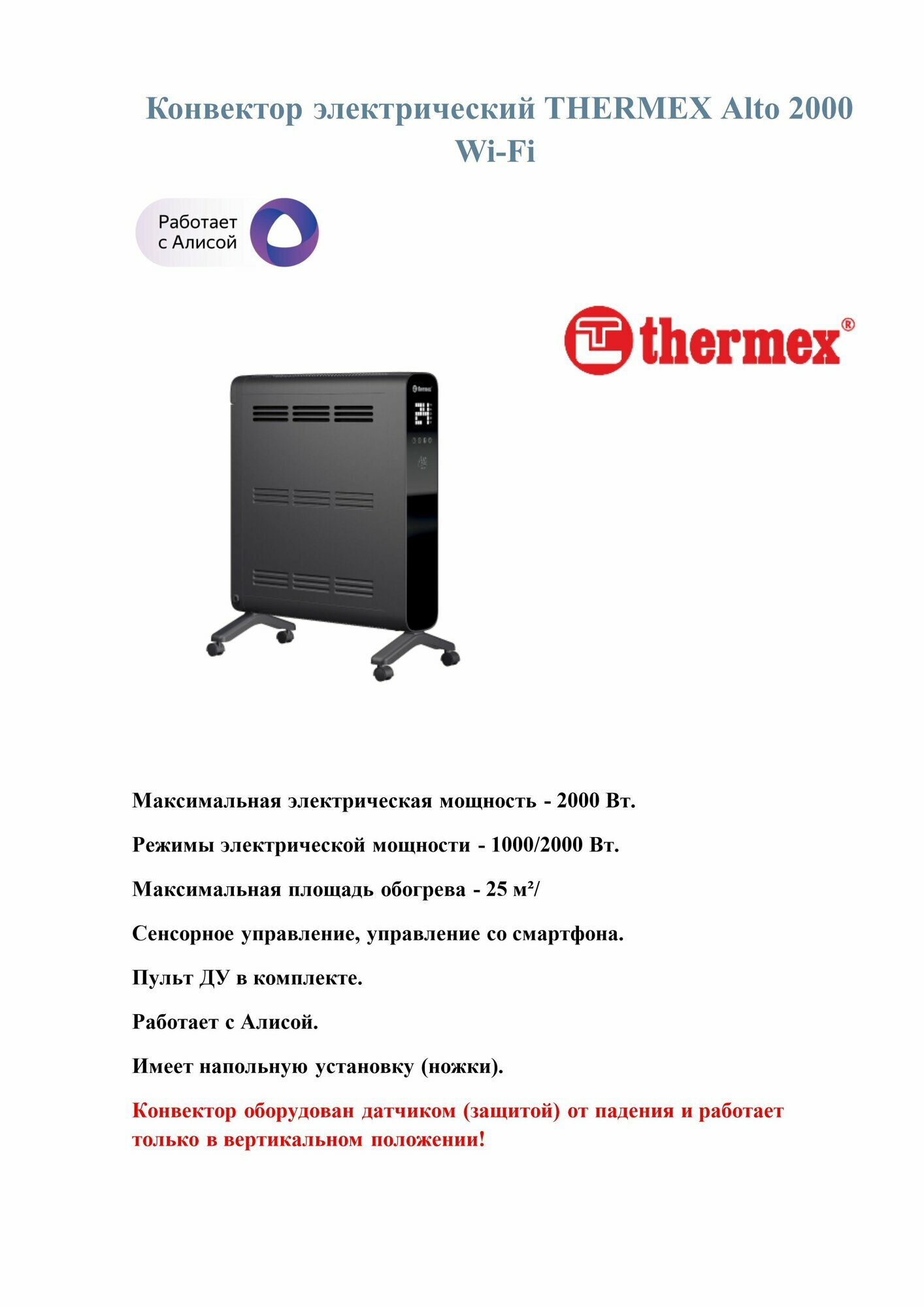 Конвектор электрический THERMEX Alto: сравнение цен, характеристики, фото, актуальное наличие и цены.