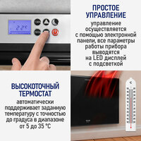 Конвекционный обогреватель – это сочетание инновационных технологий, многолетнего опыта и смелого подхода в области климатической техники. Технология конвекционного нагрева обладает максимальной теплоотдачей и энергоэффективностью, по сравнению с обогревателями других типов. Алюминиевый нагревательный элемент нового поколения нагревается моментально после включения прибора. Распространение тепла происходит плавно и равномерно за счет естественной циркуляции нагретого воздуха. Прибор работает абсолютно бесшумно. Тепловентилятор обладает функцией индивидуального программирования времени автоматического включения и выключения в каждый день недели от 1 до 24 часов. Система защиты класса IP: IP24 обеспечивает дополнительную безопасность работы устройства.