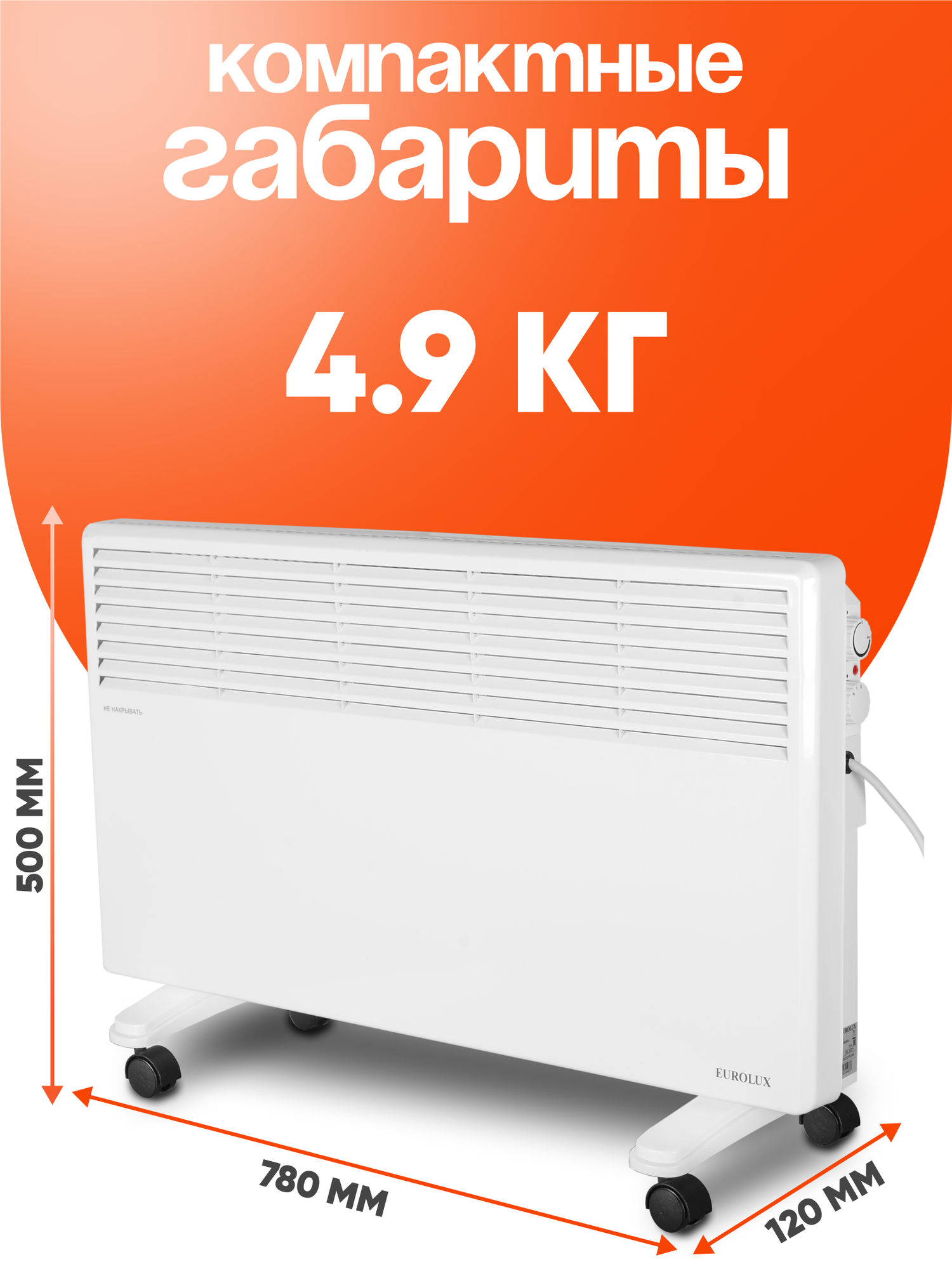 Конвектор электрический, Eurolux ОК- EU-1000, 1кВт, монолитный нагревательный элемент