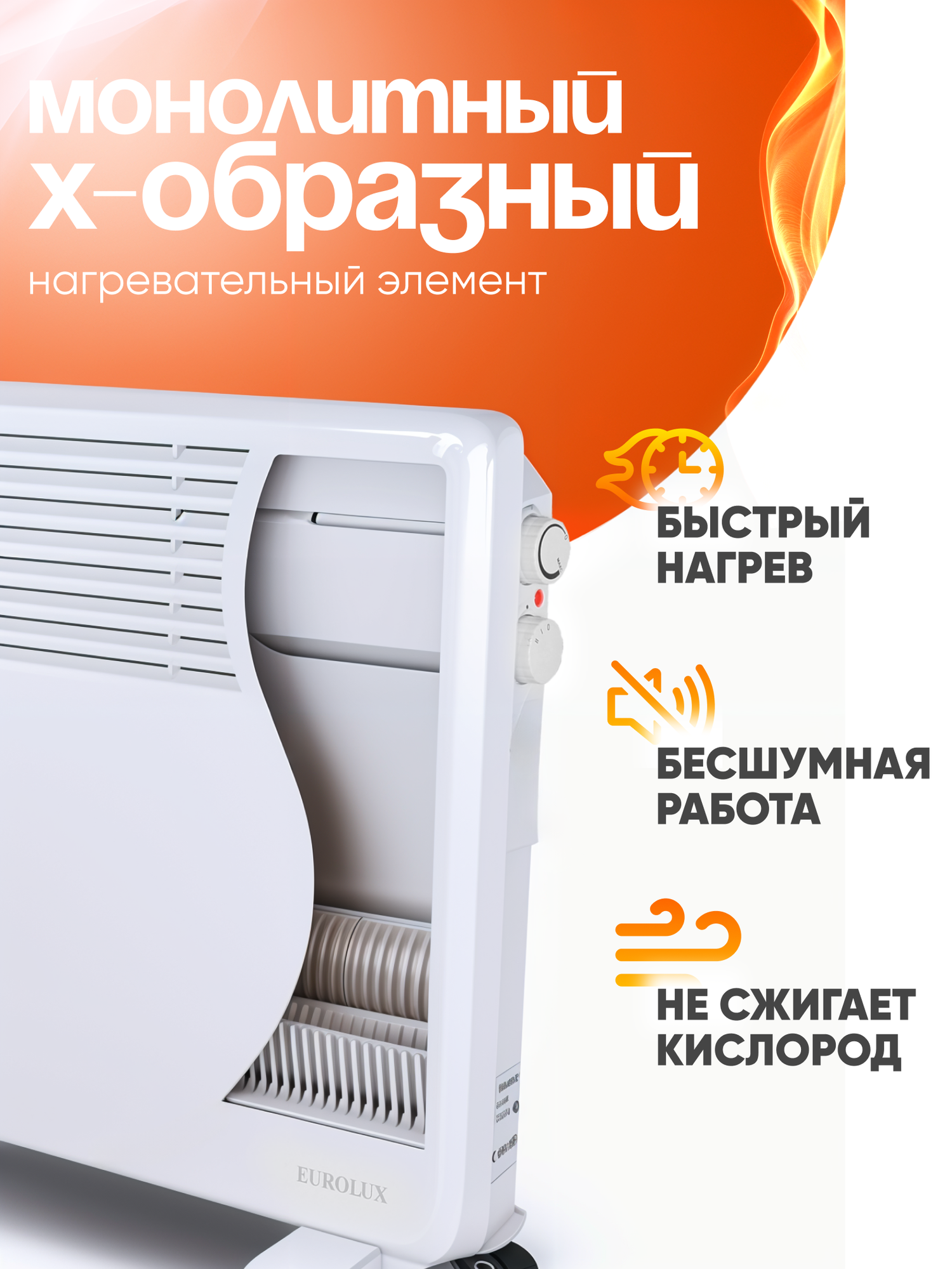 Конвектор EUROLUX ОК-EU-2000, нагревательный элемент монолит (х-образный), мощностью 2000 Вт