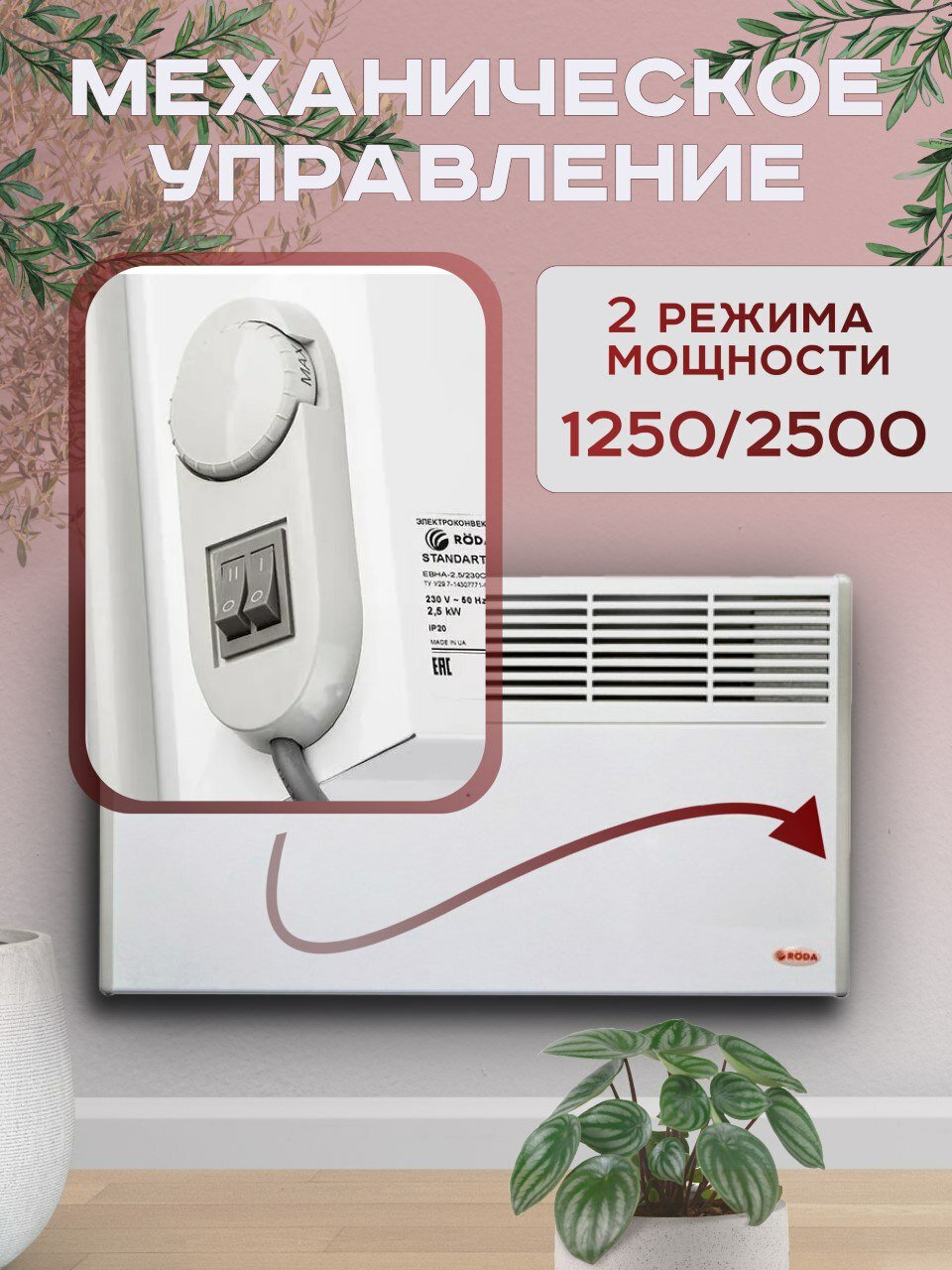 | Подробная комплектация | Электроконвектор - 1 шт. Кронштейн для установки конвектора на стене - 2 шт. Руководство по эксплуатации - 1 экземпляр |
