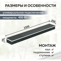 Конвектор внутрипольный 200х70х1500 водяной с решеткой алюминий, радиатор отопительный