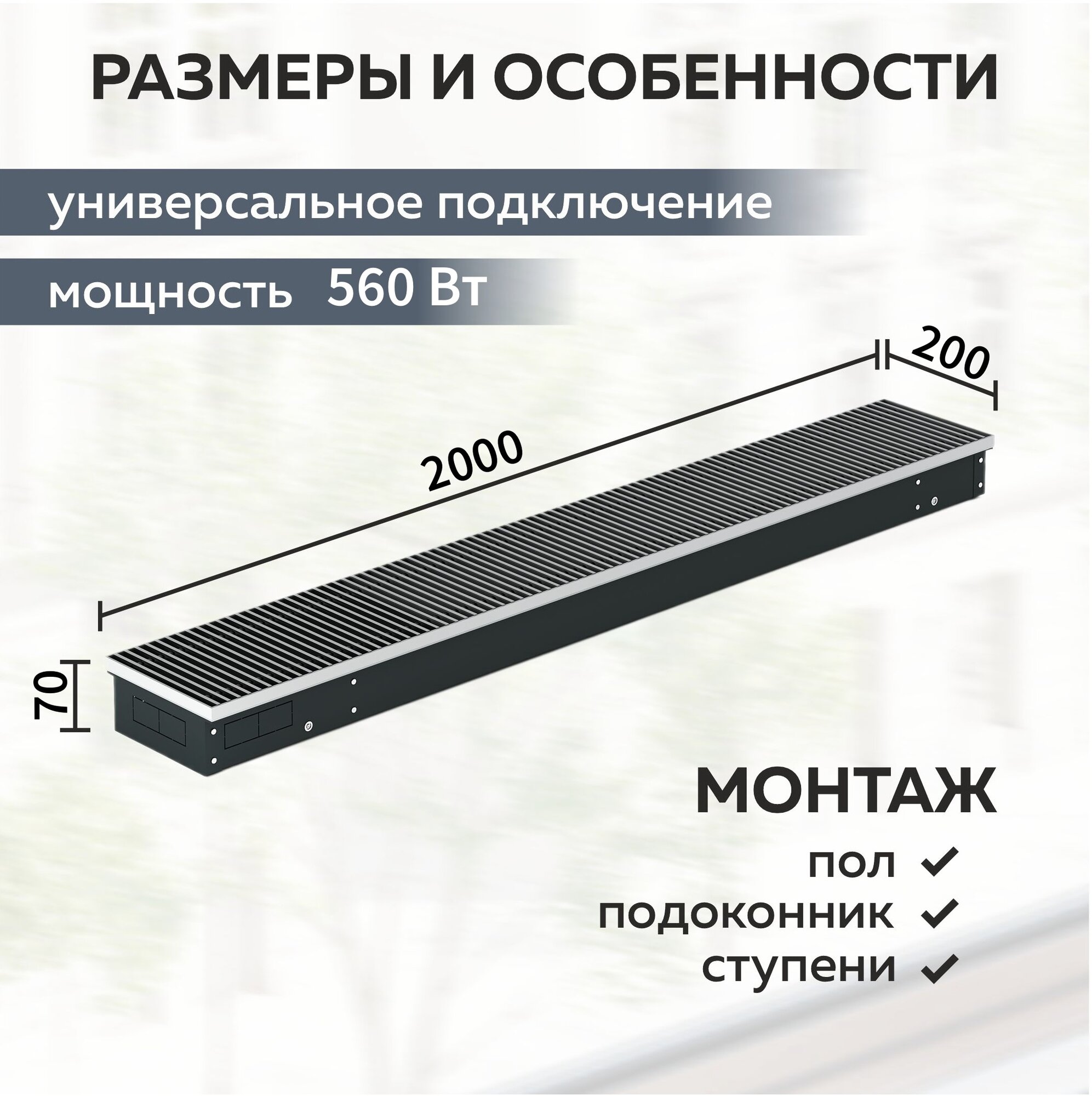 Конвектор внутрипольный 200х70х2000 водяной с решеткой алюминий, радиатор отопительный