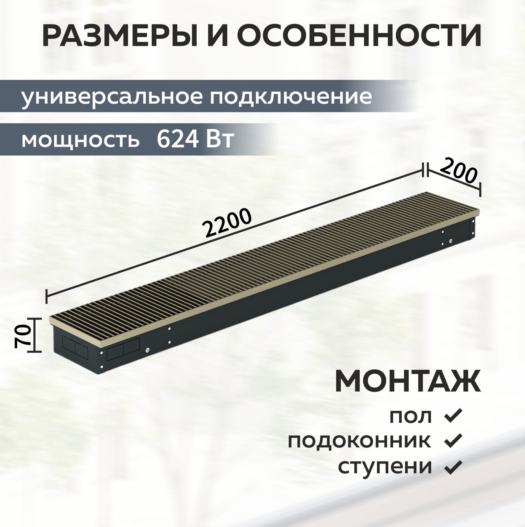 Конвектор внутрипольный 200х70х2200 водяной с решеткой цвета шампань, радиатор отопительный: сравнение цен, характеристики, фото, актуальное наличие и цены.