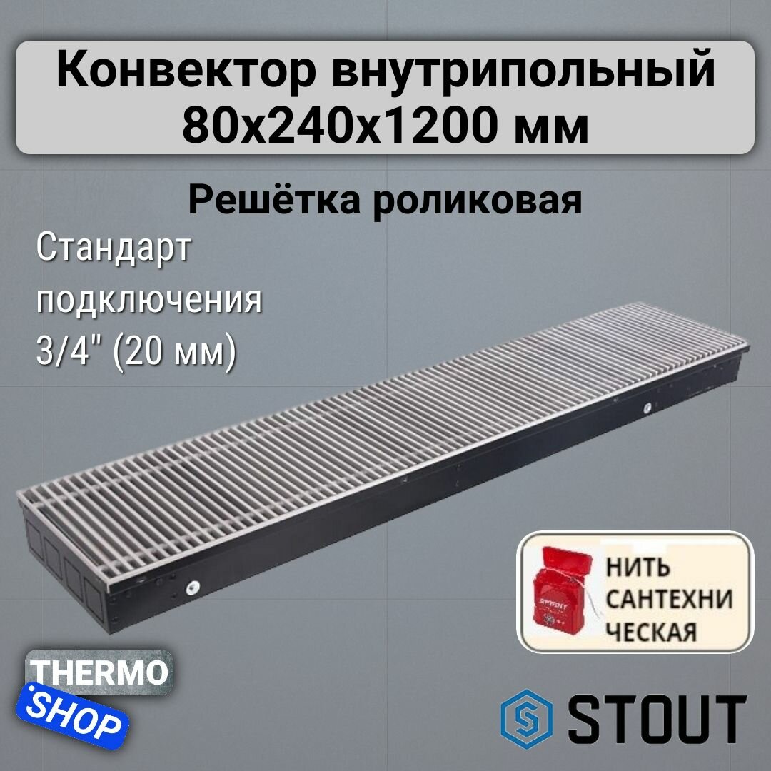 Купить Конвектор внутрипольный SCN 80.240.1200 (Решётка роликовая, анодированный алюминий) STOUT, нить сантехническая с доставкой по всей России.