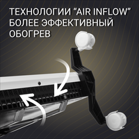 Благодаря технологии “Air Inflow” площадь забора воздуха увеличена, что делает обогрев более эффективным. Возможность выбора мощности нагревательного элемента позволит оптимизировать энергозатраты.