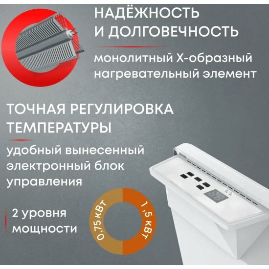 Конвектор ZEDER 15EX-01 BIANCO, на 20 кв. м, 1,5 кВт, монолитный Х-нагревательный элемент, электронное управление: сравнение цен, характеристики, фото, актуальное наличие и цены.