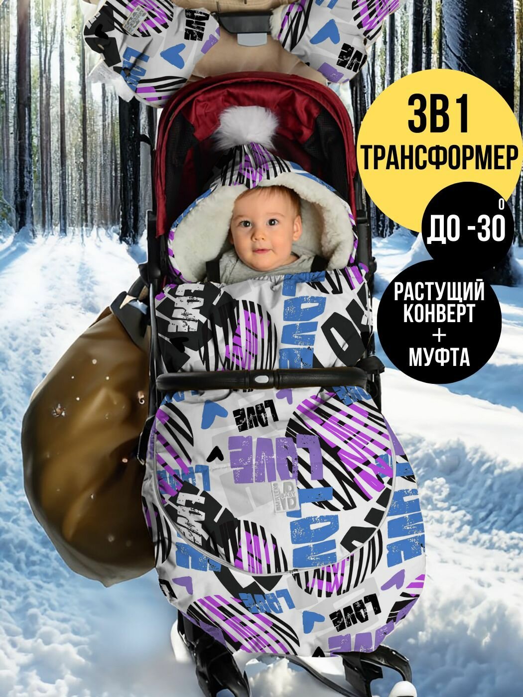 Конверт 2 в 1 + Муфта, Любовь фиолетовая, арт.513Ш/1 (104 см): сравнение цен, характеристики, фото, актуальное наличие и цены.