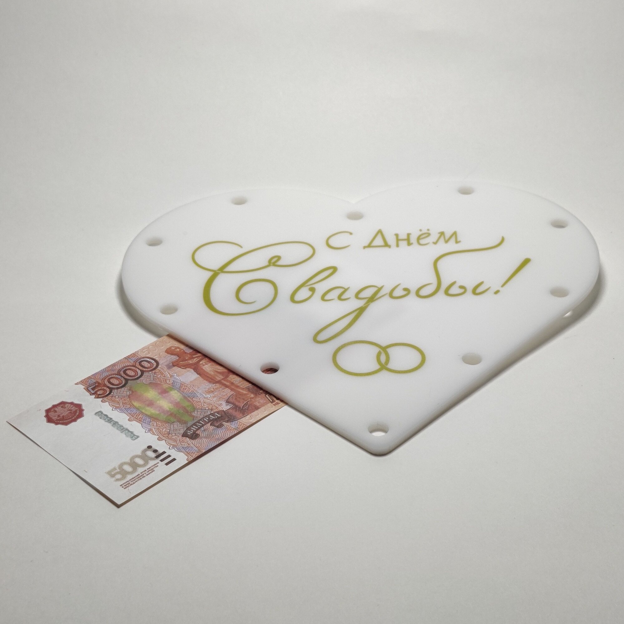 Купить Конверт для денег на свадьбу «Сердце С Днём свадьбы» / 20 гаек (Фон: Белый, Текст: Золотой) с доставкой по всей России.