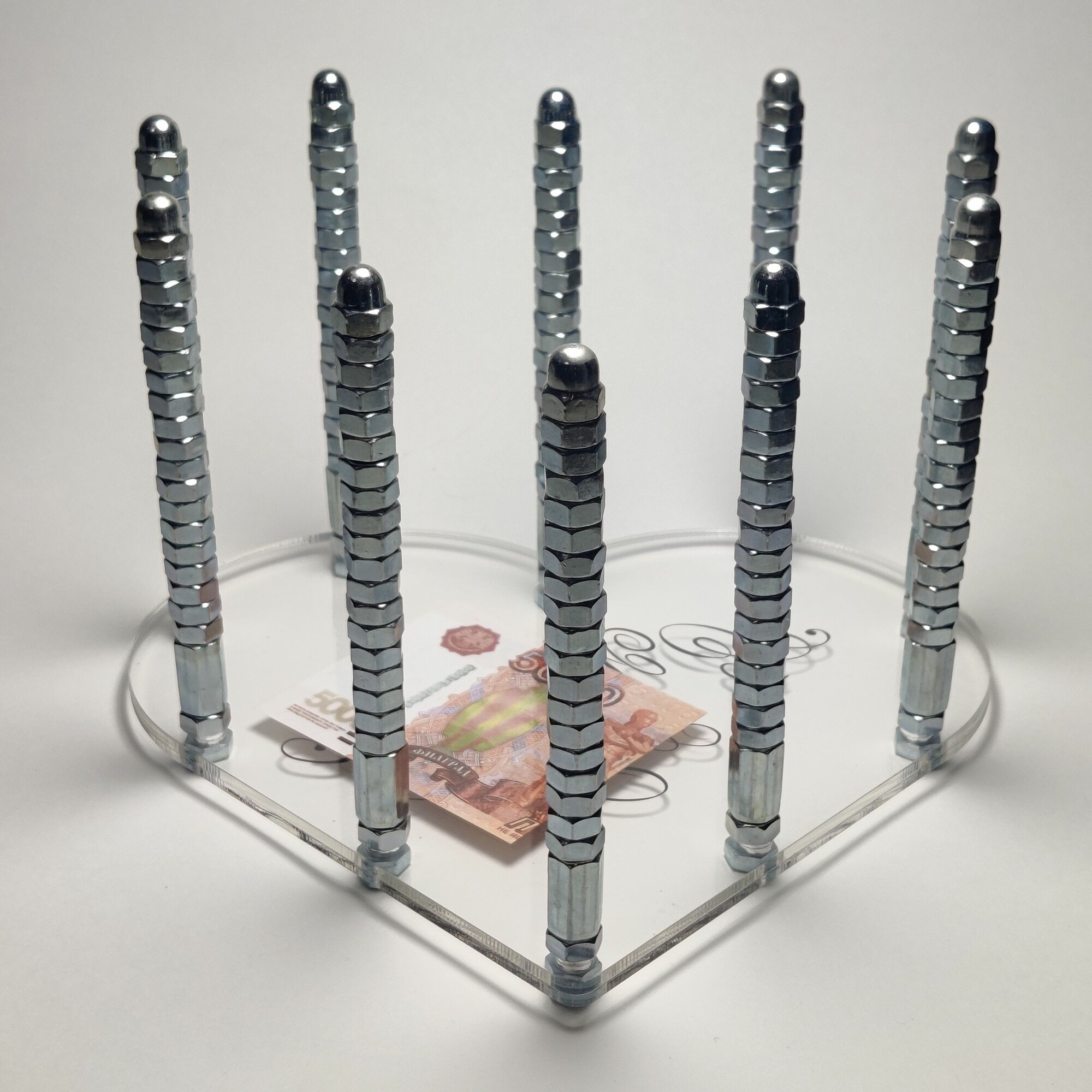 Купить Конверт для денег на свадьбу «Сердце С Днём свадьбы» / 220 гаек (Фон: Прозрачный, Текст: Серебро) с доставкой по всей России.