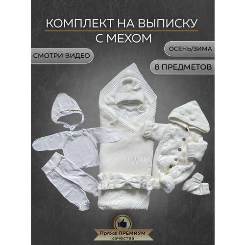 КОНВЕРТ ДЛЯ НОВОРОЖДЕННЫХ НА ВЫПИСКУ ТЕПЛЫЙ вязаный 8 предметов в роддом белый: сравнение цен, характеристики, фото, актуальное наличие и цены.