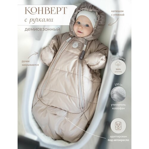 Уютный конверт с ручками, созданный специально для новорожденных, несомненно станет идеальным спутником в холодные времена. Он подарит комфорт и тепло вашему малышу в период перехода с одного сезона на другой. С заботливостью исполненный, этот конверт для младенцев наделен прекрасными свойствами — защитит от холода и ветра, он дарит тепло и уют. Цвета универсальные, подойдут как для мальчика, так и для девочки.Конверт с капюшоном, который оберегает головку вашего малыша от ветра и непогоды , готов отправиться вместе с вами на прогулку или же пригодится при поездке в автомобильном кресле. Демисезонный конверт - это идеальный выбор как на весну, так и на осень.Удобная застежка на молнию во всю длину конверта, позволит быстро, и без усилий, переодеть малыша. Еще одно неоспоримое достоинство нашей модели конверта это то ,что у него есть прорези для ремней автолюльки. Необыкновенно практичные универсальные цвета нашего конверта для малышей позволяют сочетать его с любыми аксессуарами. Внутренняя подкладка из натурального хлопка создает приятное ощущение безмятежности вашему чаду, а благодаря утеплителю из холлофана вы можете быть спокойны за сохранение тепла малыша в любую погоду. Идеальный вариант для выписки из роддома, дальнейших прогулок в коляске и поездок в автомобиле.
