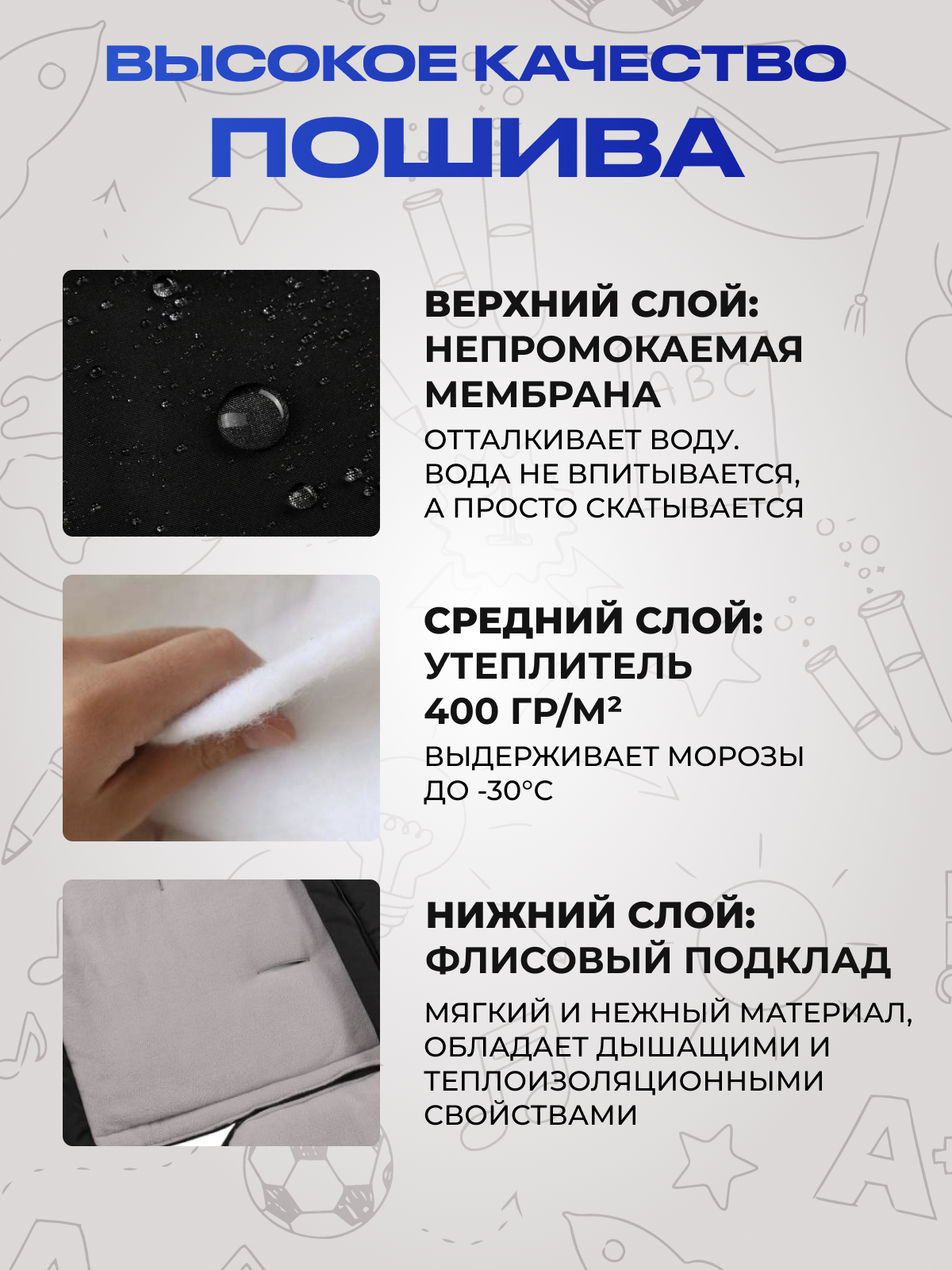 Он обеспечит вашего малыша комфортной и безопасной защитой в холодные зимние дни. Благодаря утеплителю 400гр. и мягкой флисовой подкладке, ваш ребенок будет чувствовать себя тепло и уютно даже в самые суровые морозы.