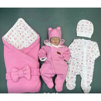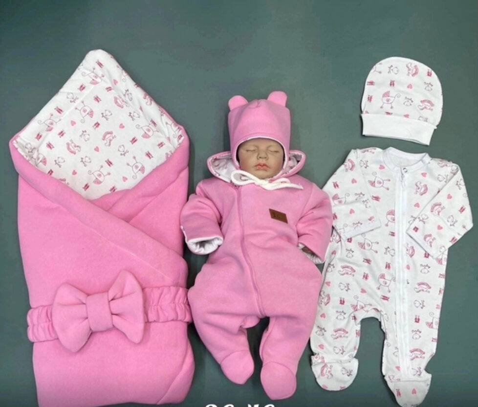 Купить Конверт для новорождённых на выписку теплый С овчиной в роддом комплект трикотаж флис осень зима розовый с доставкой по всей России.