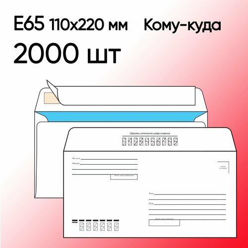 Купить Конверт Е65 Куда-кому 2000 шт 110х220 мм стрип с доставкой по всей России. Конверт Е65 Куда-кому 2000 шт 110х220 мм стрип: сравнение цен, характеристики, фото, актуальное наличие и цены.