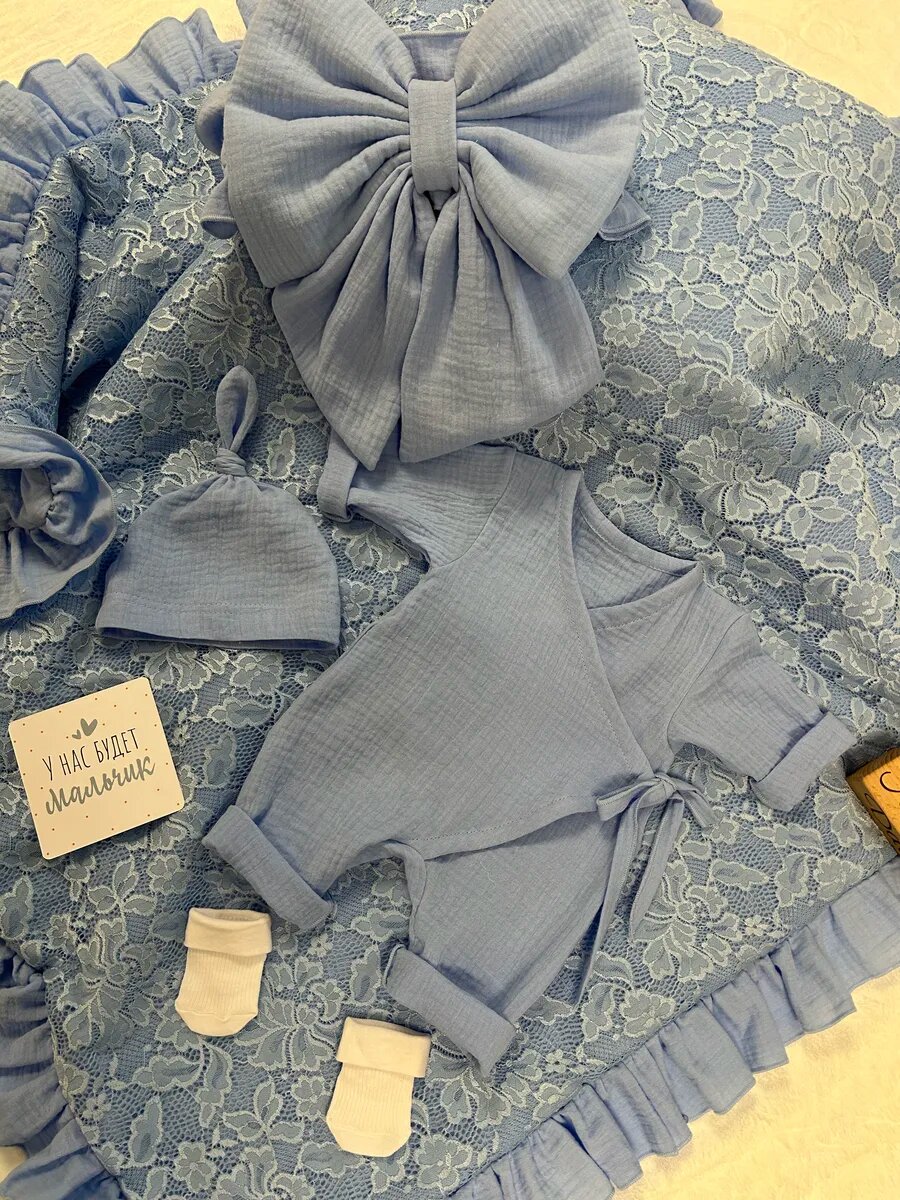Подарите своему крохе самый нежный и комфортный старт в мир с конвертом на выписку от младень! Этот очаровательный конверт-одеяло, украшенный милыми бантами и нежным рисунком цветов, станет идеальным выбором для встречи малыша из роддома. Сшит из 100% натурального хлопка, он обеспечит крохе максимальный комфорт и безопасность. Легкий и воздушный, конверт прекрасно подойдет для теплой погоды, а утеплитель из холлофайбера позволит малышу чувствовать себя уютно даже в прохладные дни. Бант-резинка позволит легко и быстро зафиксировать конверт, а мягкая подкладка из 100% хлопка подарит малышу ощущение нежности и заботы. Этот конверт станет не только практичным, но и стильным аксессуаром для счастливой семьи. Представьте себе: мама с сияющим лицом, гордо несущая своего маленького мальчика, укутанного в этот прекрасный конверт. Этот момент станет одним из самых трогательных и запоминающихся в жизни вашей семьи. Конверт на выписку младень - это не просто вещь, это символ любви, заботы и нежности, которые вы дарите своему малышу.