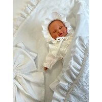 Белый цвет конверта символизирует чистоту и невинность, подчеркивая хрупкость и беззащитность новорожденной. Этот конверт станет прекрасным спутником для вашей малышки на пути из роддома домой, на крещение и в повседневной жизни.