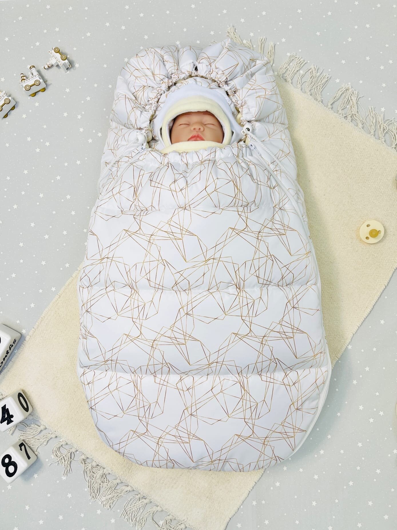 Купить Конверт ALMeretskaya «Канада», для новорожденных, холлофайбер, дюспо, молочный, штрихи с доставкой по всей России.